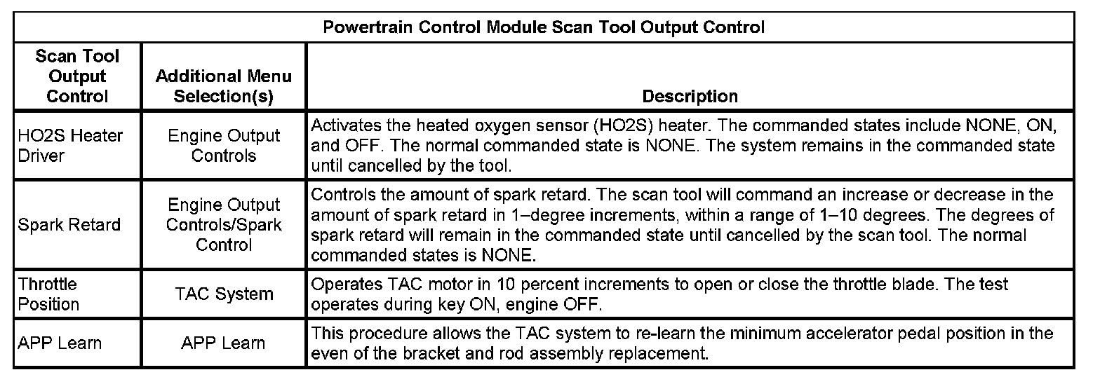 Scan Tool Output Controls