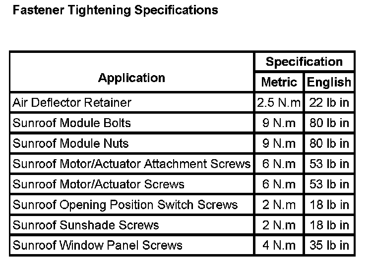 Fastener Tightening Specifications: