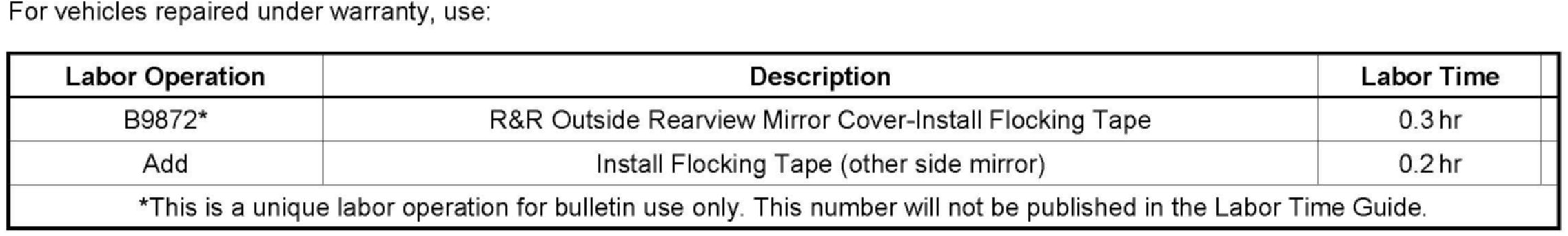 Some customers may comment about a more than desirable amount of wind noise coming from the outside rearview mirror(s).