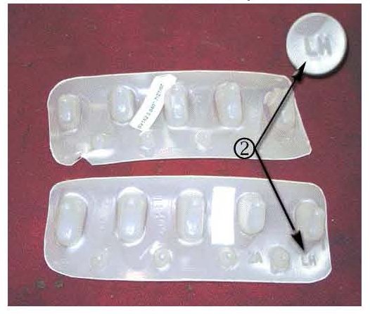 5. Apply hot glue to the energy absorbing (EA) plastic piece pocket areas (1).