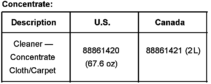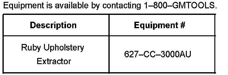 For difficult to clean materials or when cleaning a large area, the best results will be achieved when using an extractor machine and concentrate. General Motors offers the Ruby Extractor (P/N 627-CC-3000AU) through GM Tools and Equipment 1-800-GM-TOOLS, and has recently released a concentrate for use with the extractor machine.