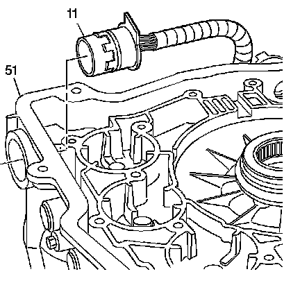 3. Assemble the wiring harness pass thru connector into the transaxle case bore from the inside of the transaxle case.