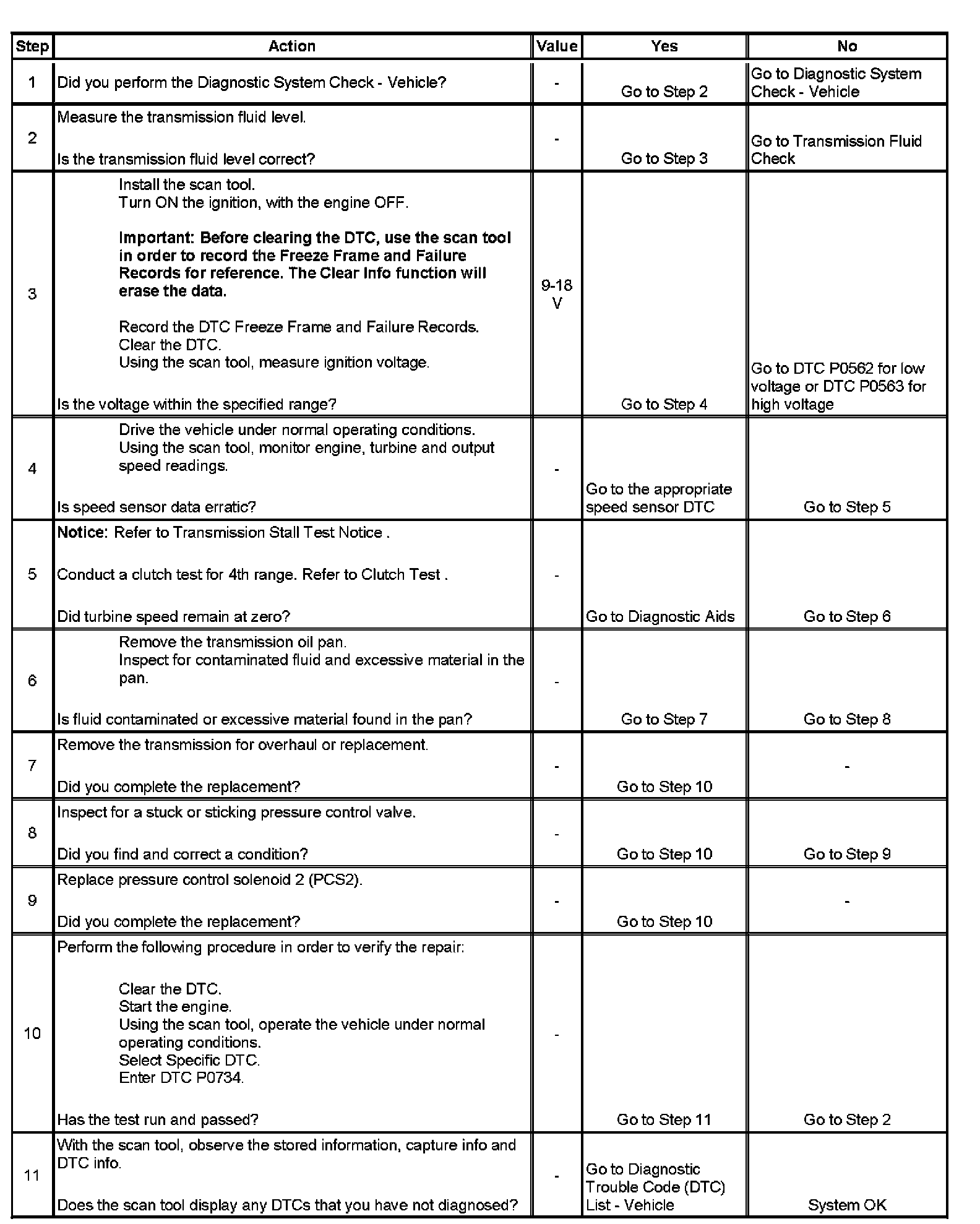 DTC P0734 sets when the calculated 4th range ratio, steady state, differs from the known 4th range ratio.