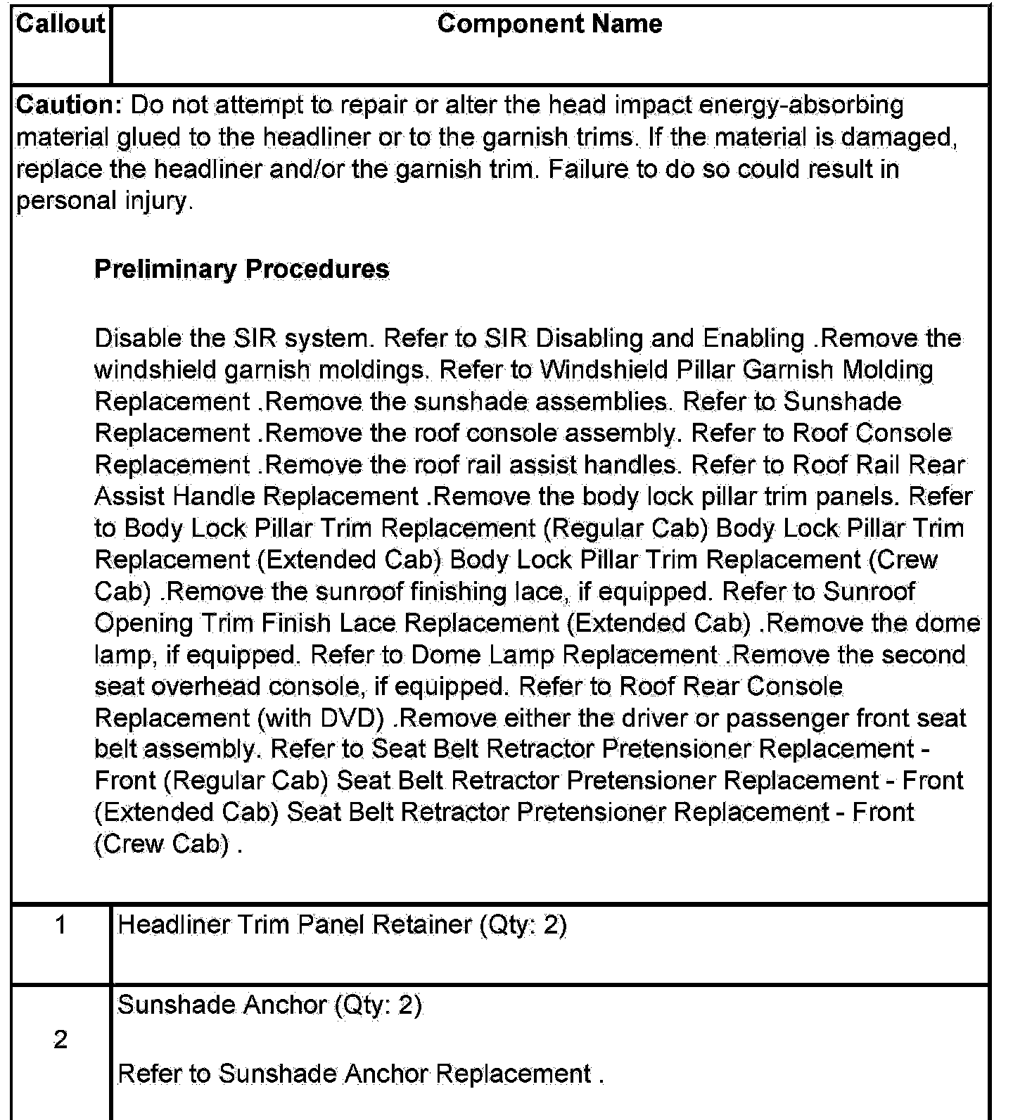 Headlining Trim Panel Replacement (Extended Cab)