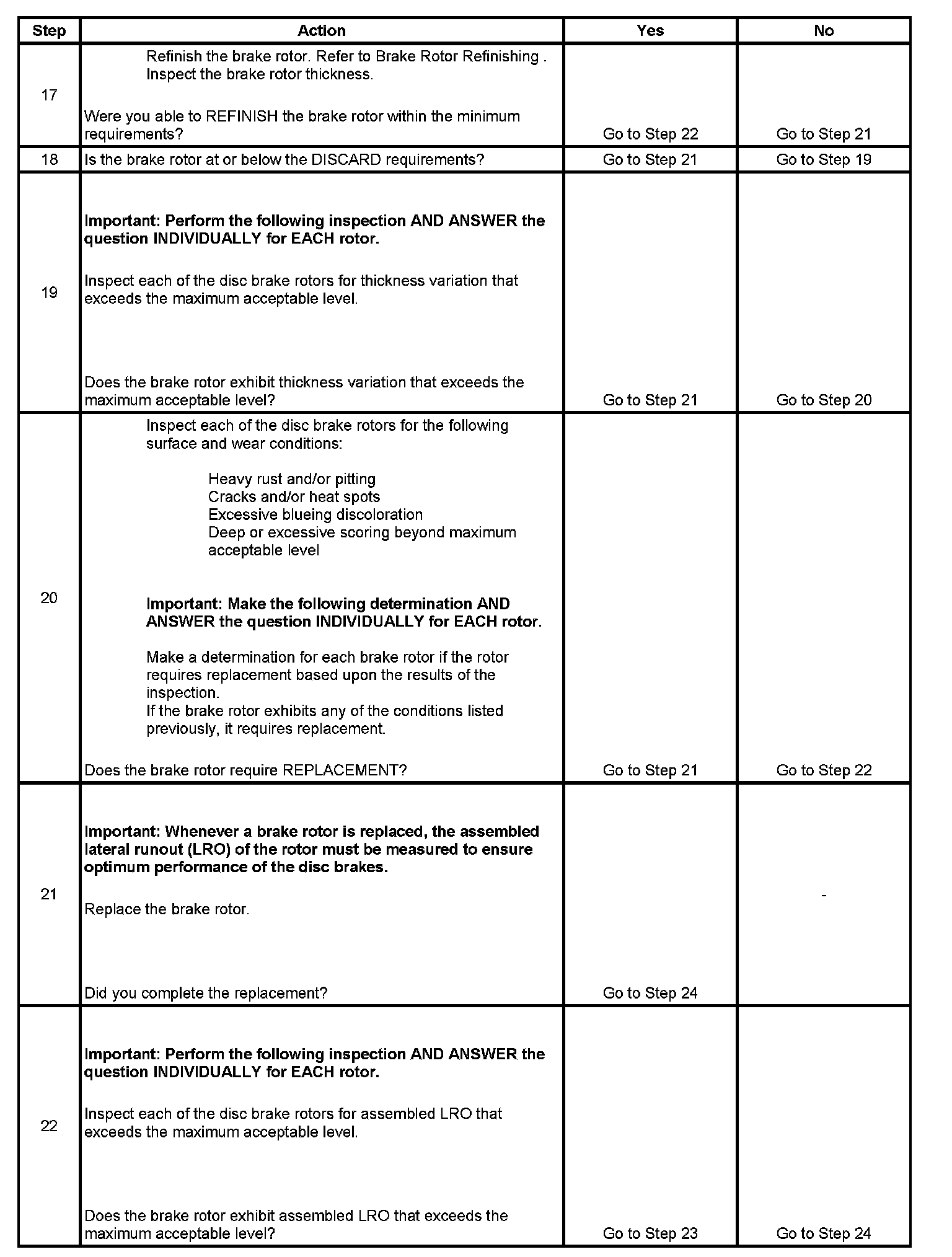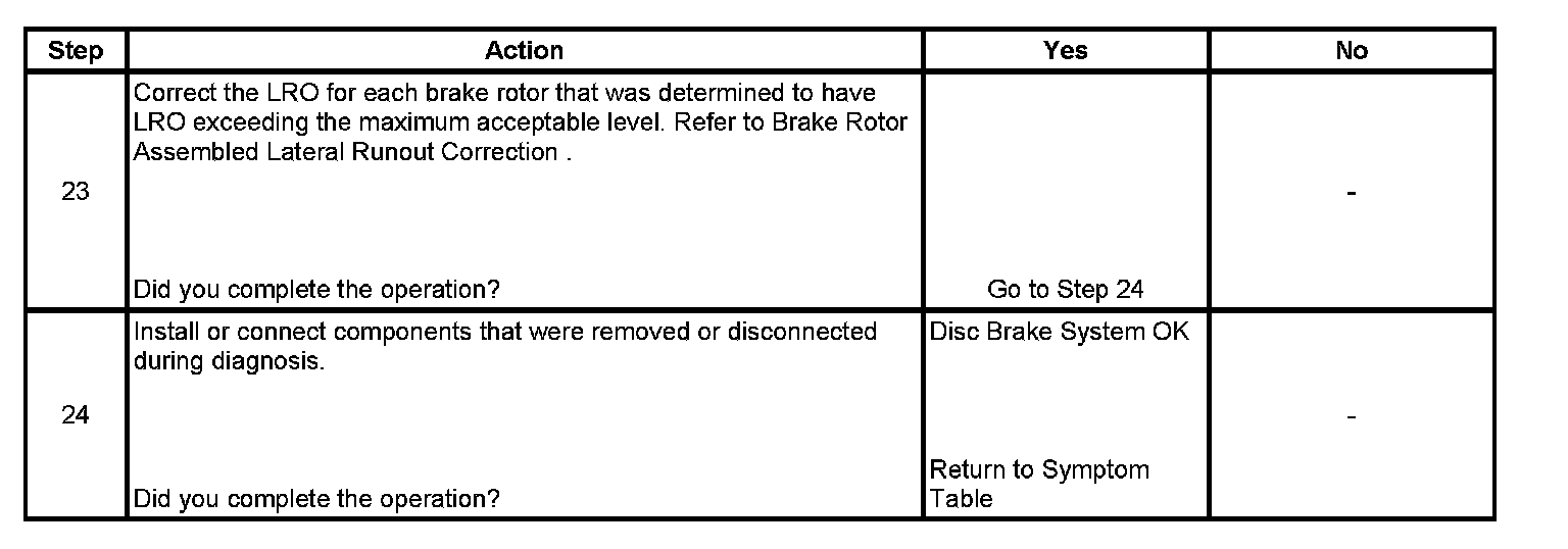22. Disc brake rotor assembled lateral runout (LRO) that exceeds the maximum acceptable level can lead to thickness variation.