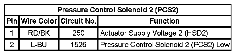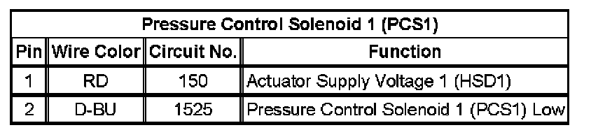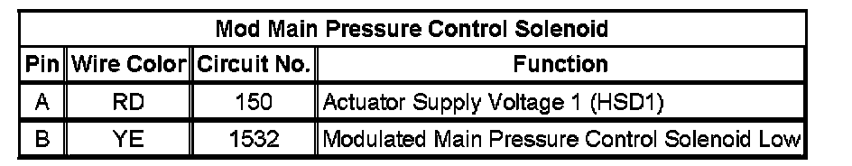 Automatic Transmission Internal Connector End ViewsMod Main Pressure Control Solenoid: