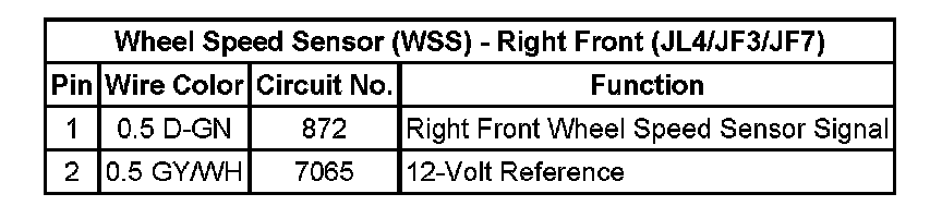 Wheel Speed Sensor (WSS) - Right Front (JL4/JF3/JF7):