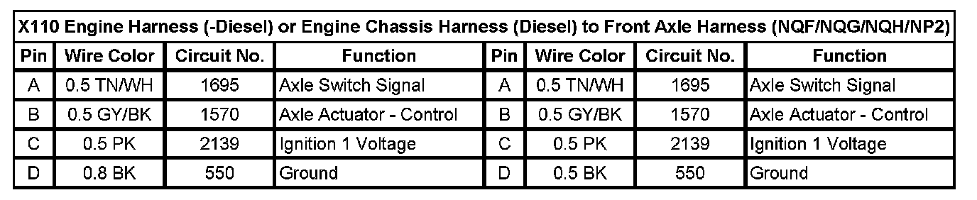 X110 Engine Harness (-Diesel) or Engine Chassis Harness (Diesel) to Front Axle Harness (NQF/NQG/NQH/NP2)