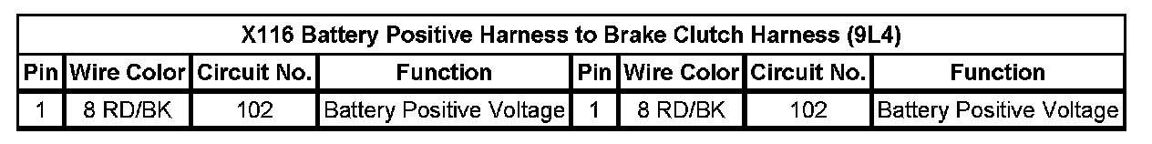 X116 Battery Positive Harness to Brake Clutch Harness (9L4)