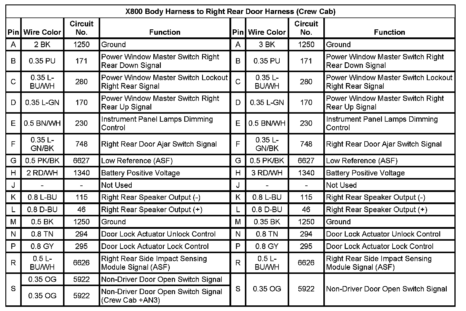 X800 Body Harness to Right Rear Door Harness (Crew Cab)
