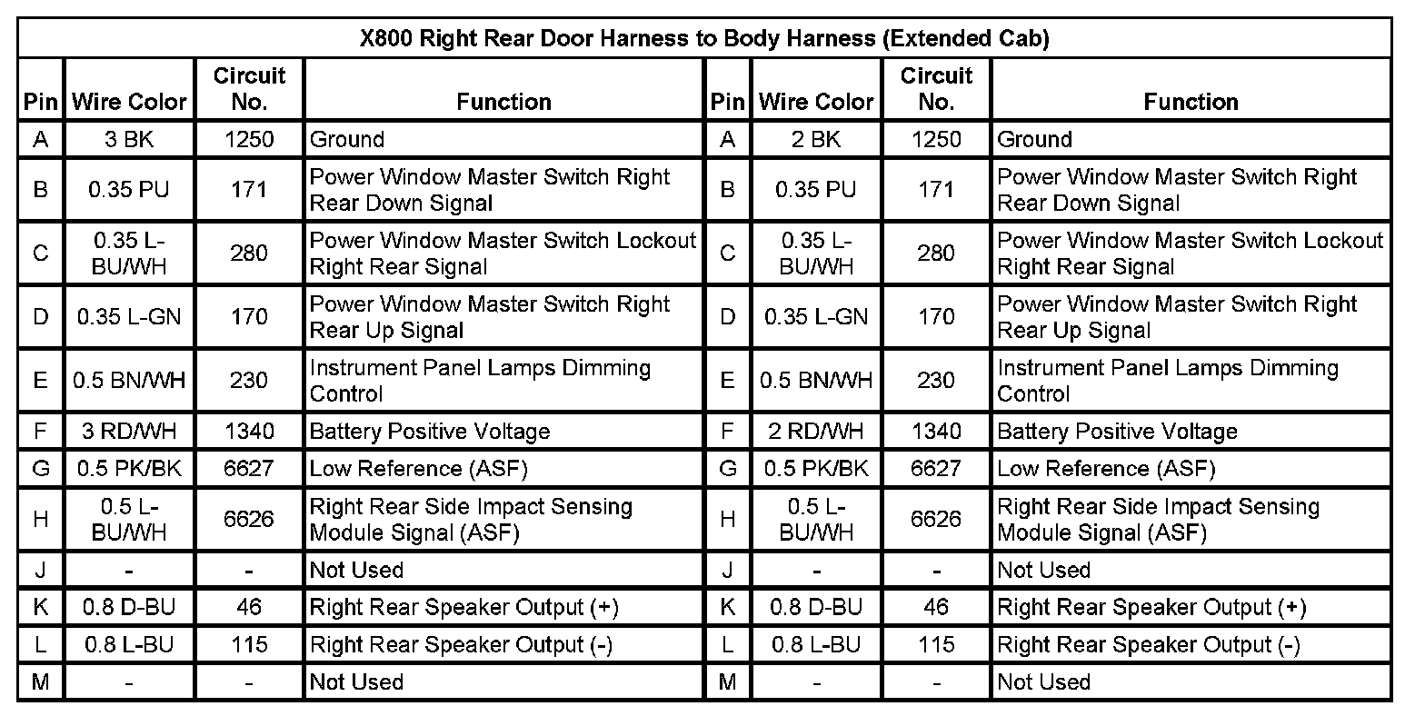 X800 Right Rear Door Harness to Body Harness (Extended Cab)
