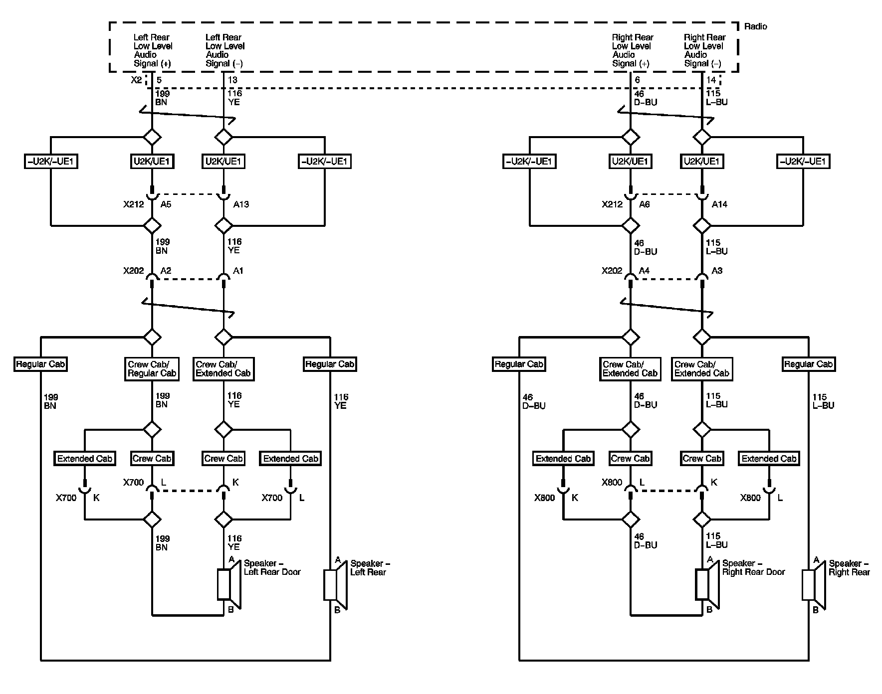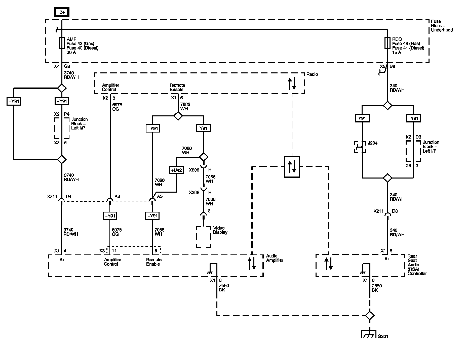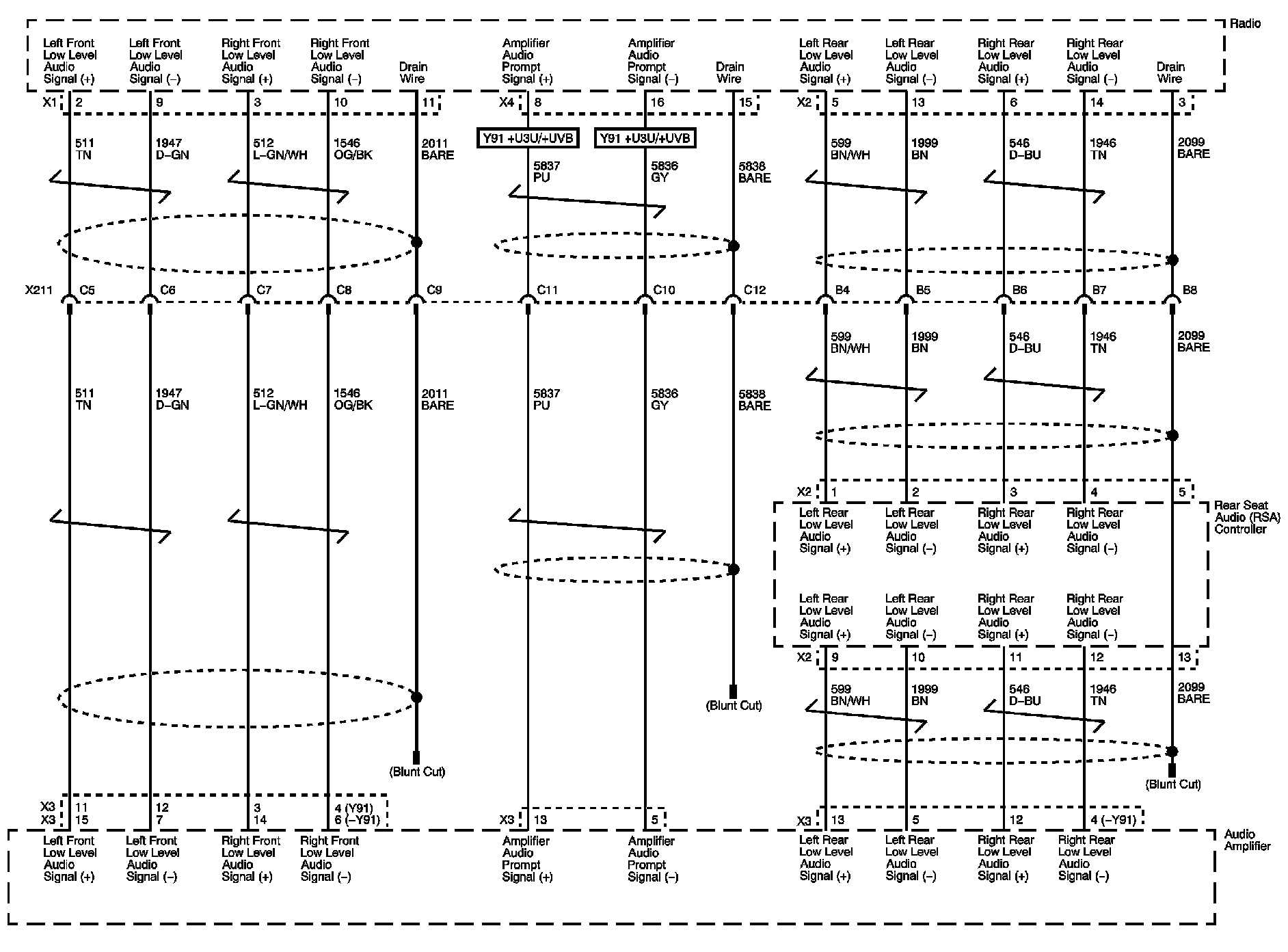 Amplifier (UQA) and Rear Seat Audio (UK6) Power, Ground and Serial Data
