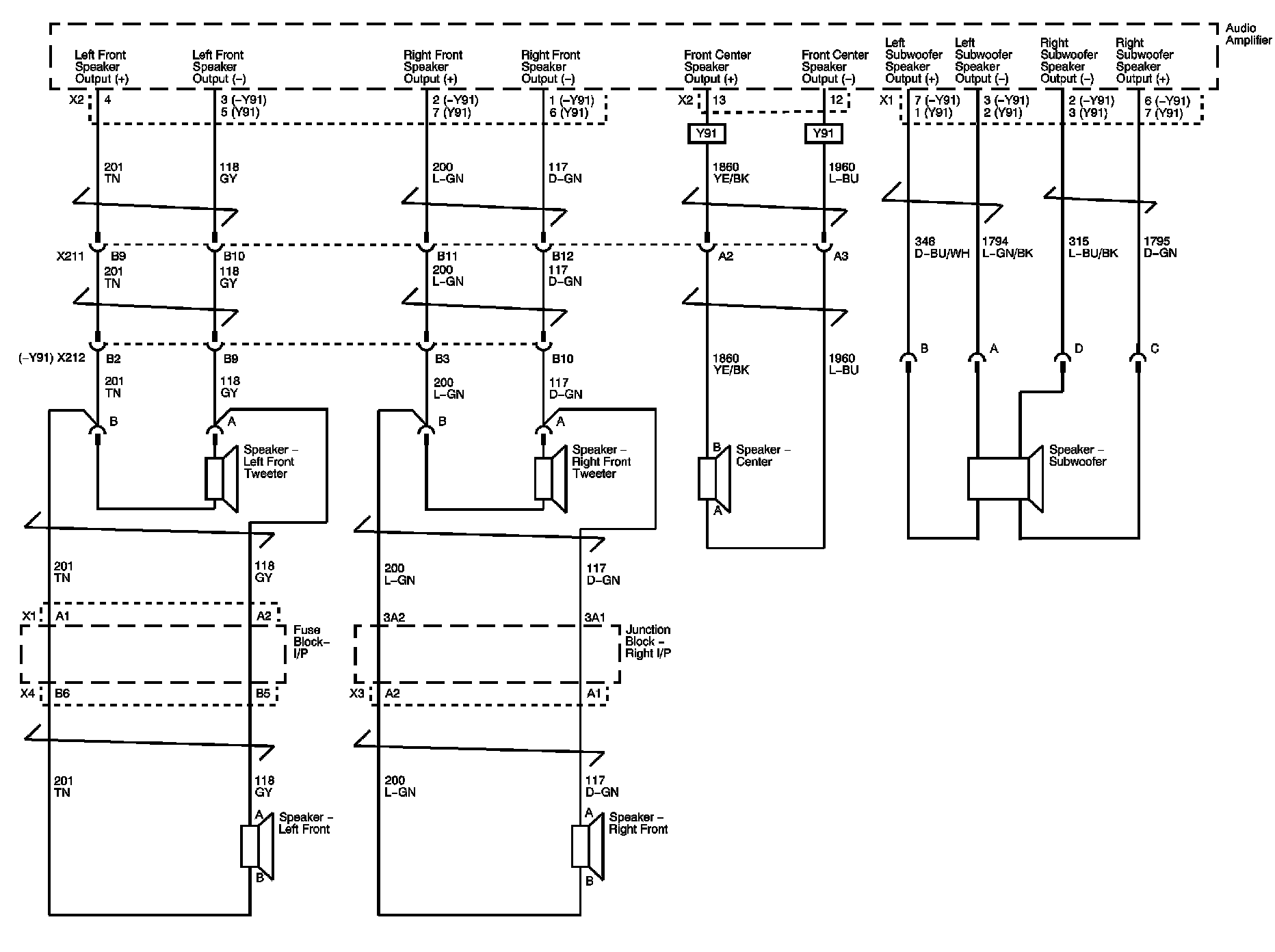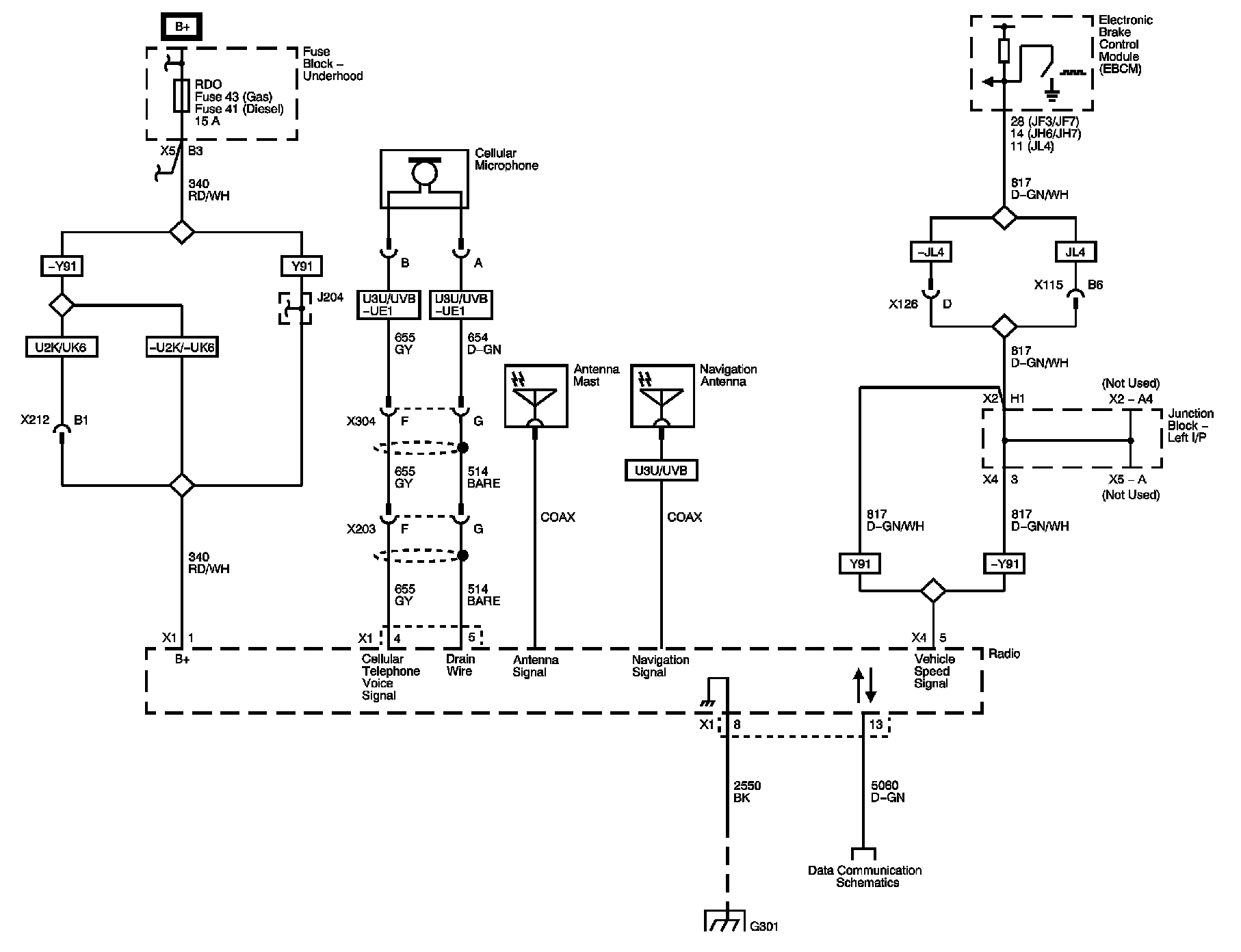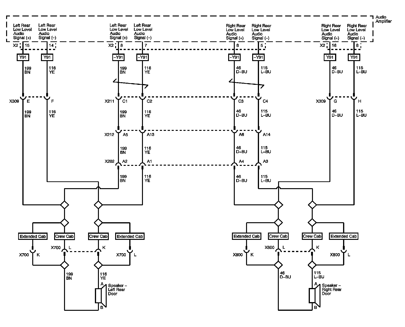 Amplifier (UQA) and Rear Seat Audio (UK6) Power, Ground and Serial Data