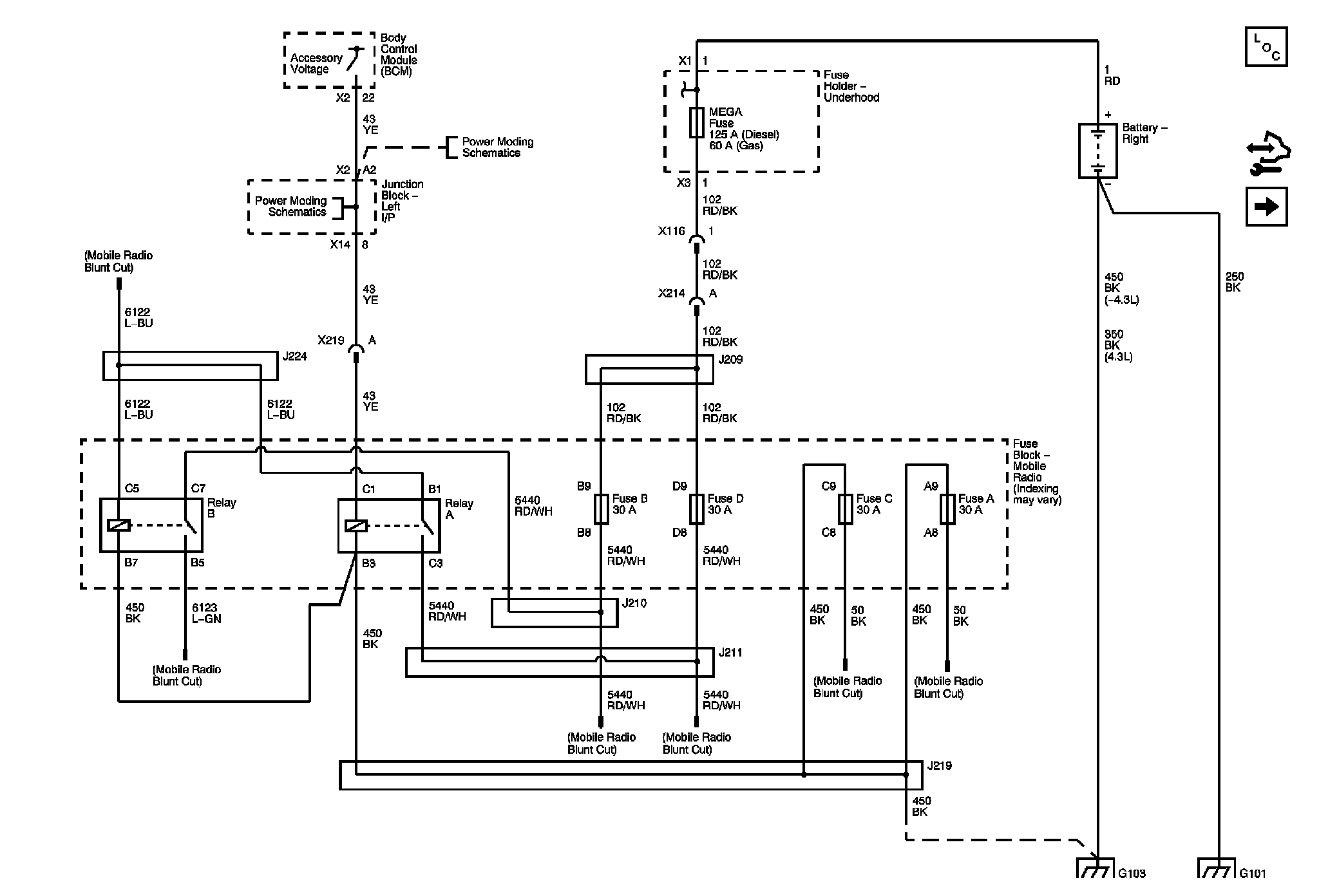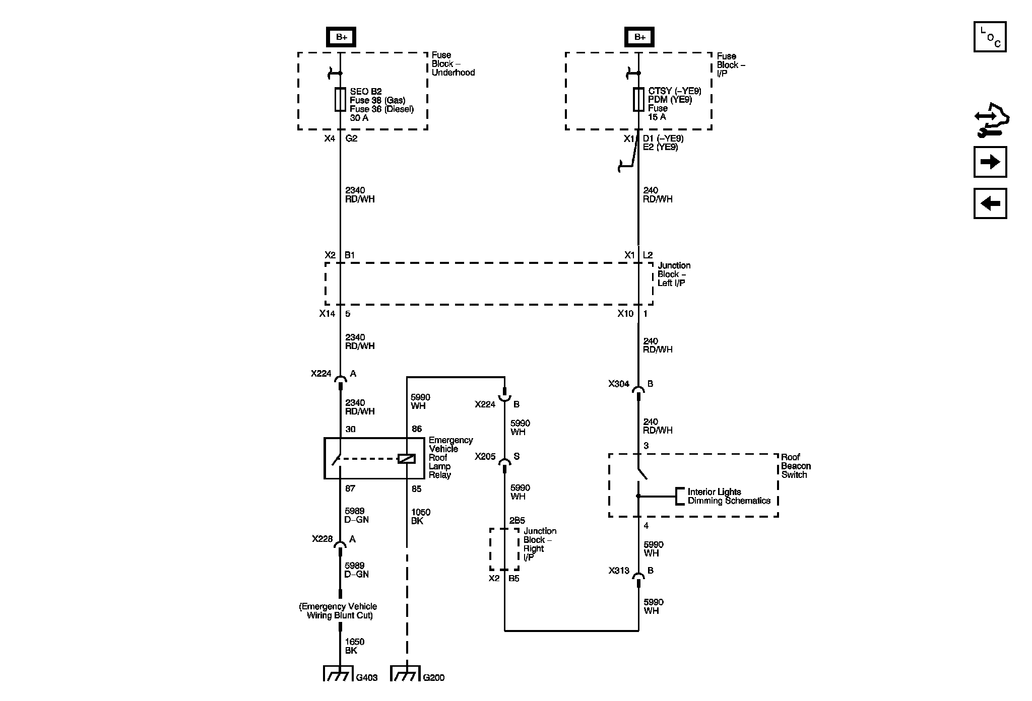 Locations: The locations for the Connectors, Grounds, Splices, and Grommets shown within these diagrams can be found via their numbers at Vehicle Locations. Locations