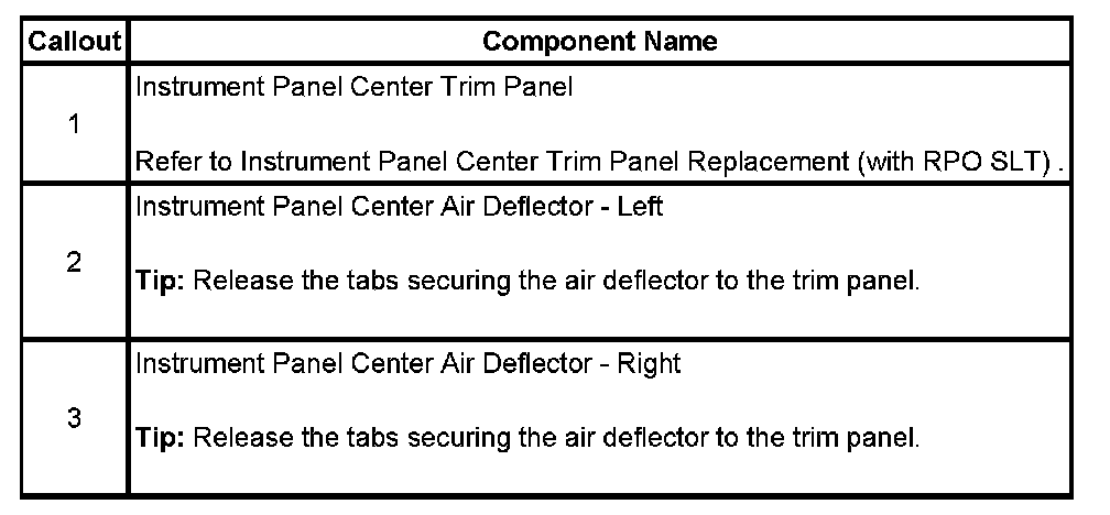 Instrument Panel Center Air Outlet Replacement (With RPO SLT)