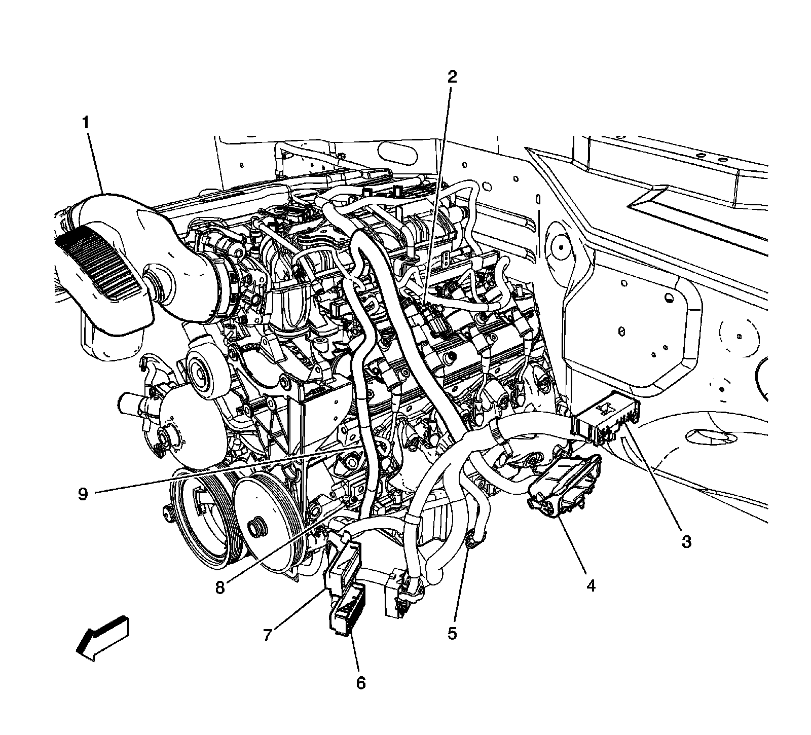 Left Front of Engine 4.8L, 5.3L, 6.0L, and 6.2L