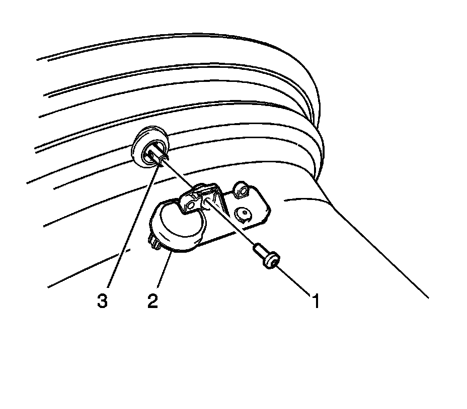 Assemble the tire pressure sensor (2) to the valve stem and install the new TORX screw (3).