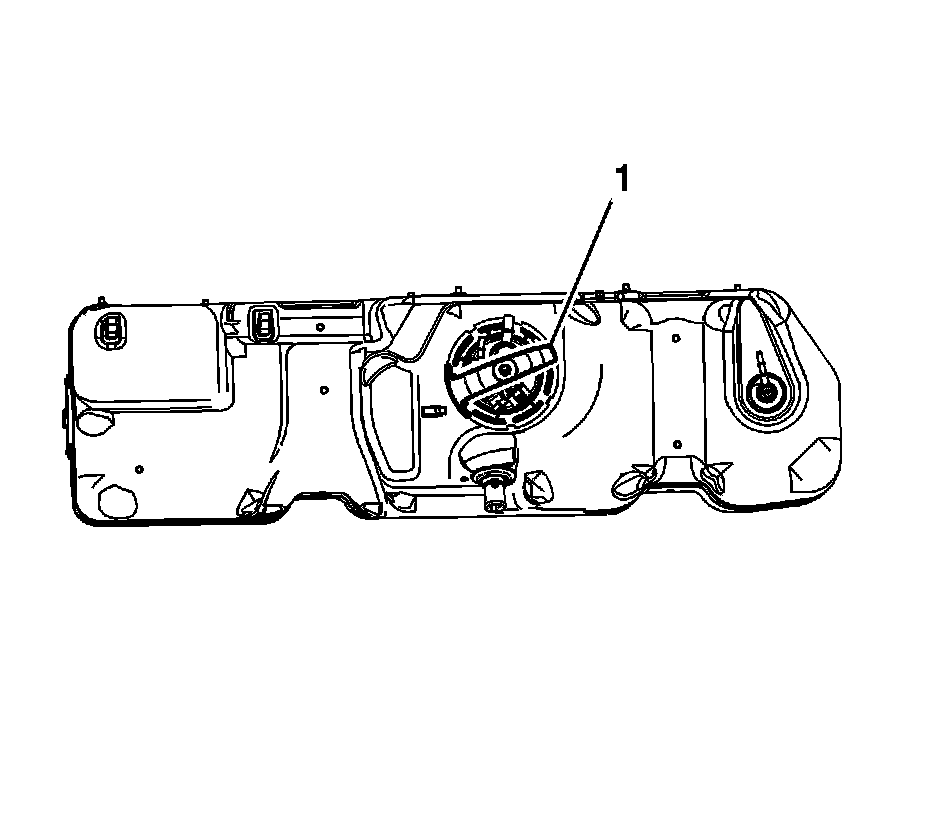 8. Remove the J 45722 (1) from the fuel tank module lock ring.