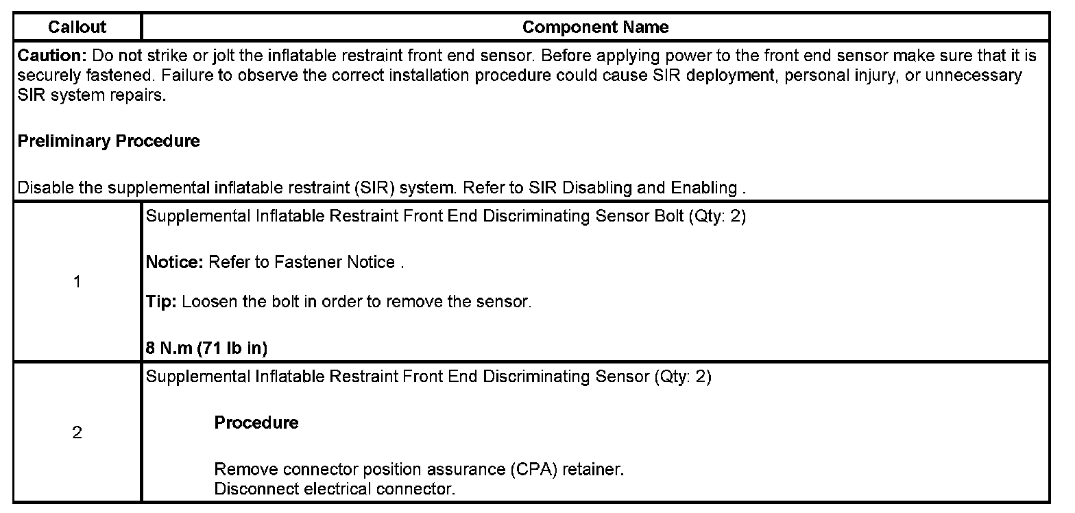 Inflatable Restraint Front End Sensor Replacement (1500)