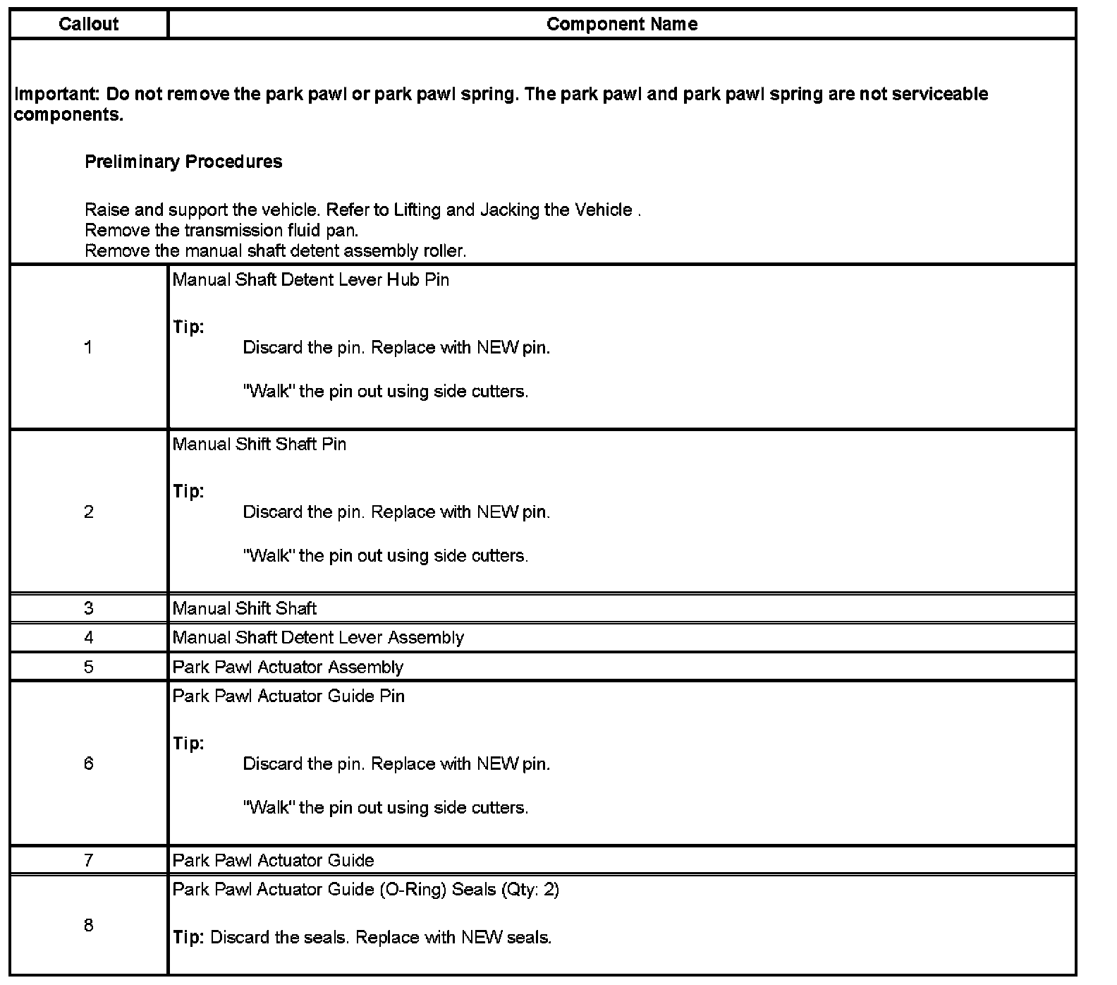 Parking Pawl: Service and Repair