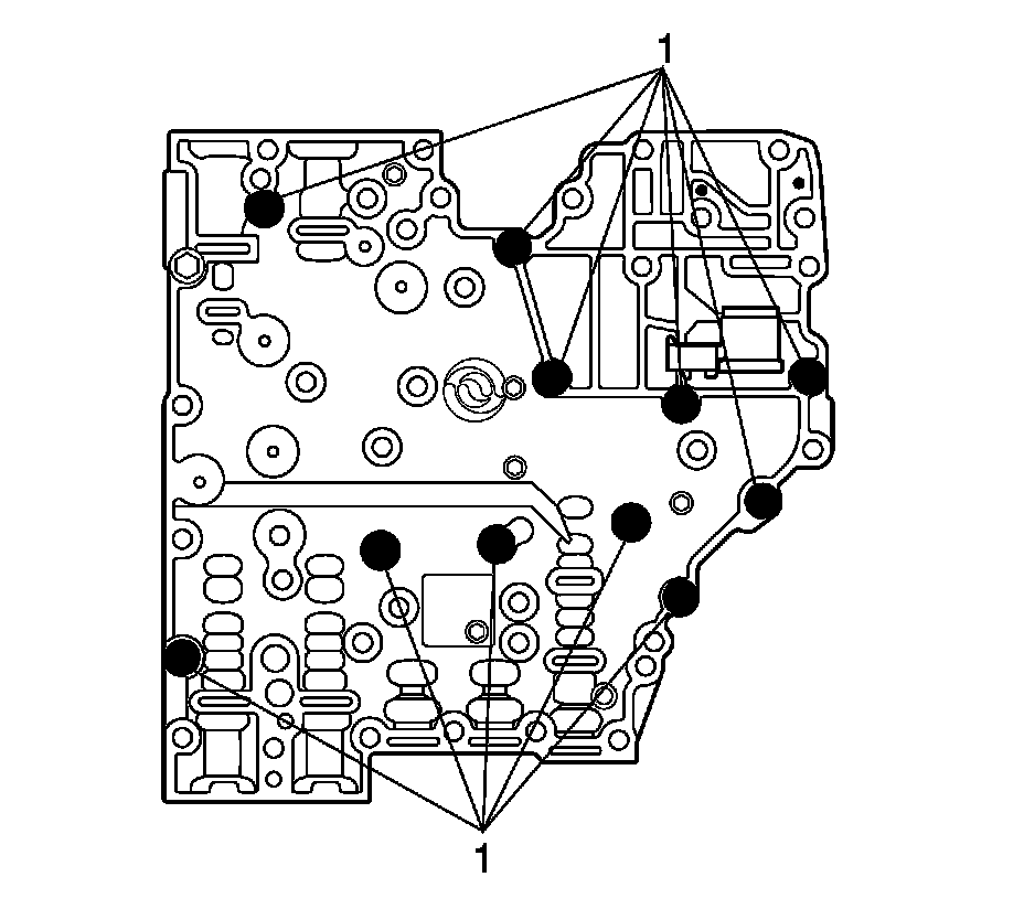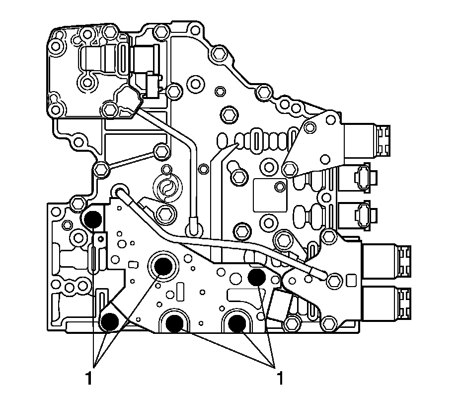 2. Remove 6 bolts (1) retaining the transmission fluid pressure (TFP) switch to the main valve body.