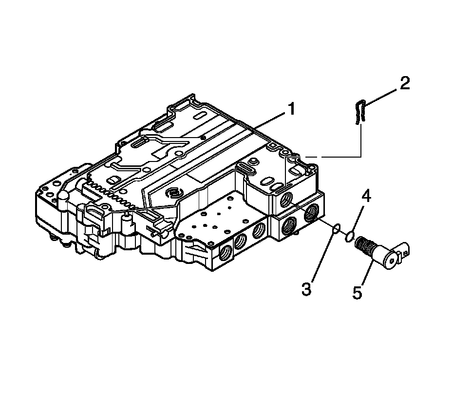 8. Remove the modulated main pressure (MAIN MOD) solenoid retainer (5) from the bottom of the valve body.