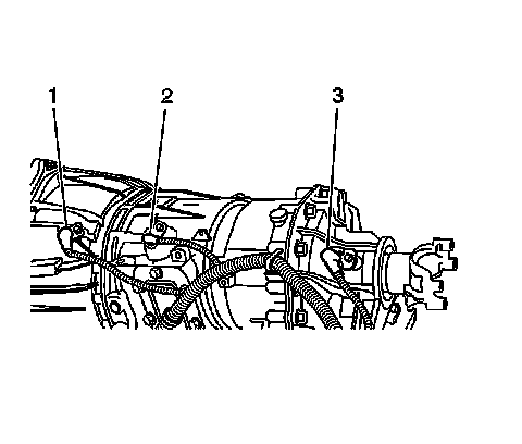 14. Two wheel drive vehicles disconnect the turbine speed sensor (1), input speed sensor (2) and output speed sensor (3).