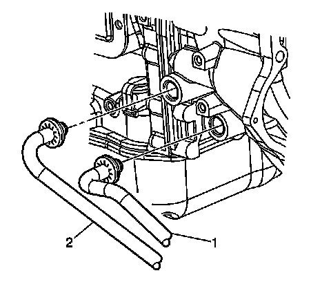 26. Disconnect the transmission oil cooler lines (1, 2) from the transmission.