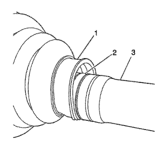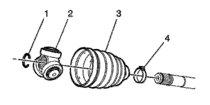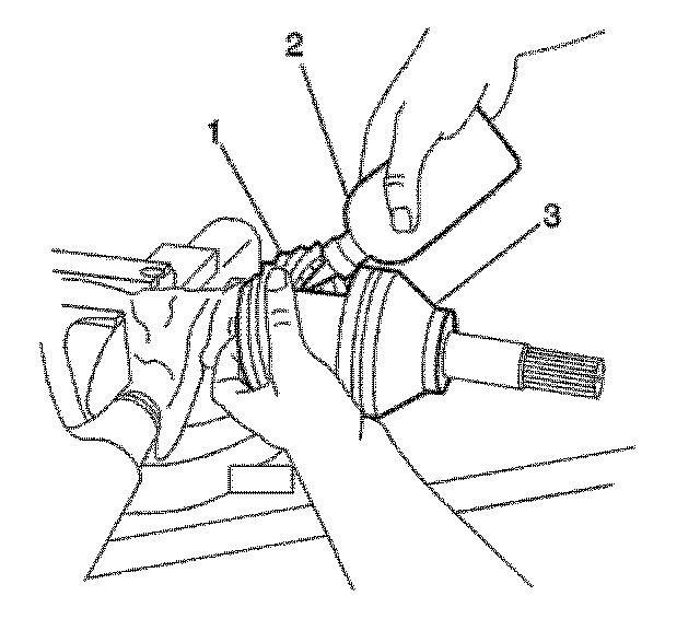 1. Position the boot (1) so that it is seated properly in the groove (2) in the wheel drive shaft (3).