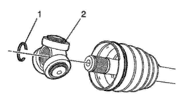 6. Install the tripot assembly (1) and the boot clamp (2).