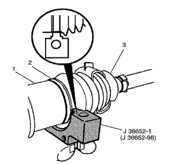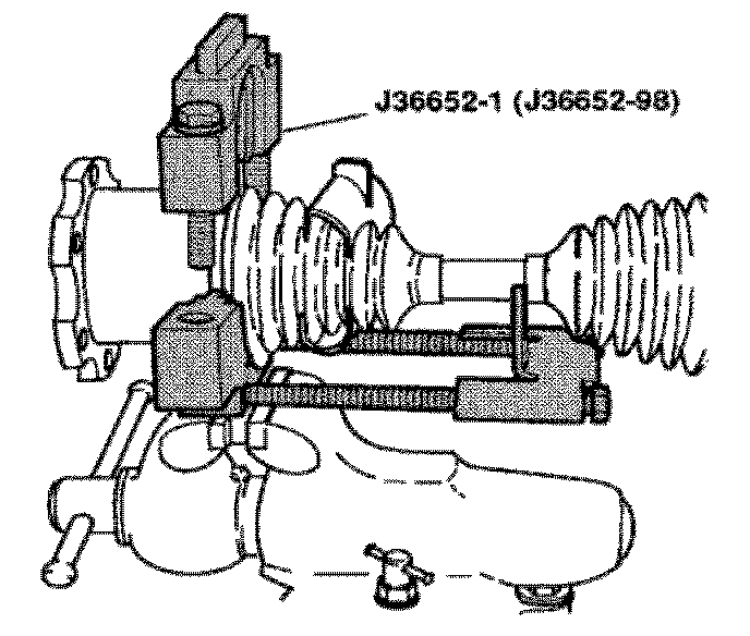 11. Position the tripot end of the wheel drive shaft assembly into the base of the J 36652-98 for the 1500 models or J 36652-1 for the 2500, 3500 models.