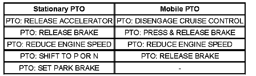 The mobile PTO mode will also disengage if the following conditions are detected by the vehicle modules: