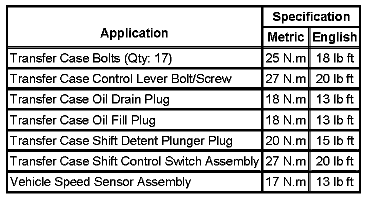 Fastener Tightening Specifications:
