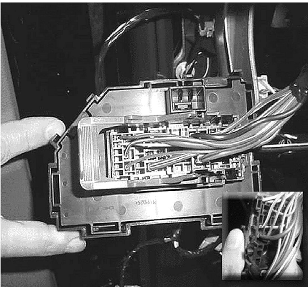 1. Remove the instrument panel (I/P) knee bolster. Refer to Knee Bolster Replacement in SI.