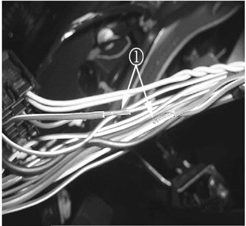 12. Re-apply tape (1) to the harness.