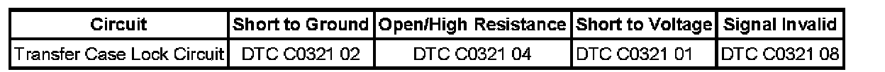 * Transfer Case Lock control reads back as a high voltage when a low voltage is expected.