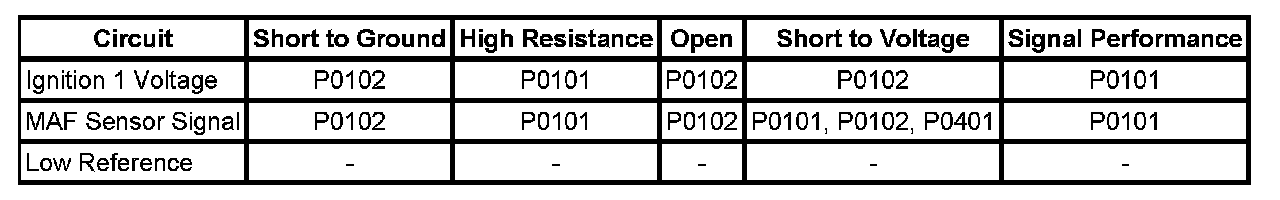 - Mass Air Flow (MAF) Sensor Circuit Low Voltage