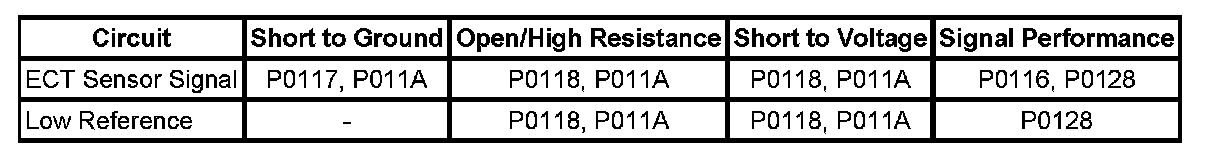 * A slight to moderate resistance in the ECT sensor signal circuit or low reference circuit will affect this diagnostic. This condition results in a greater voltage on the ECT sensor signal circuit, which is interpreted by the ECM as a colder ECT.