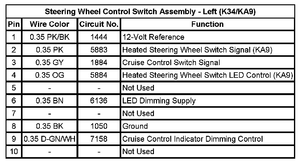 Steering Wheel Control Switch Assembly - Left (K34/KA9)