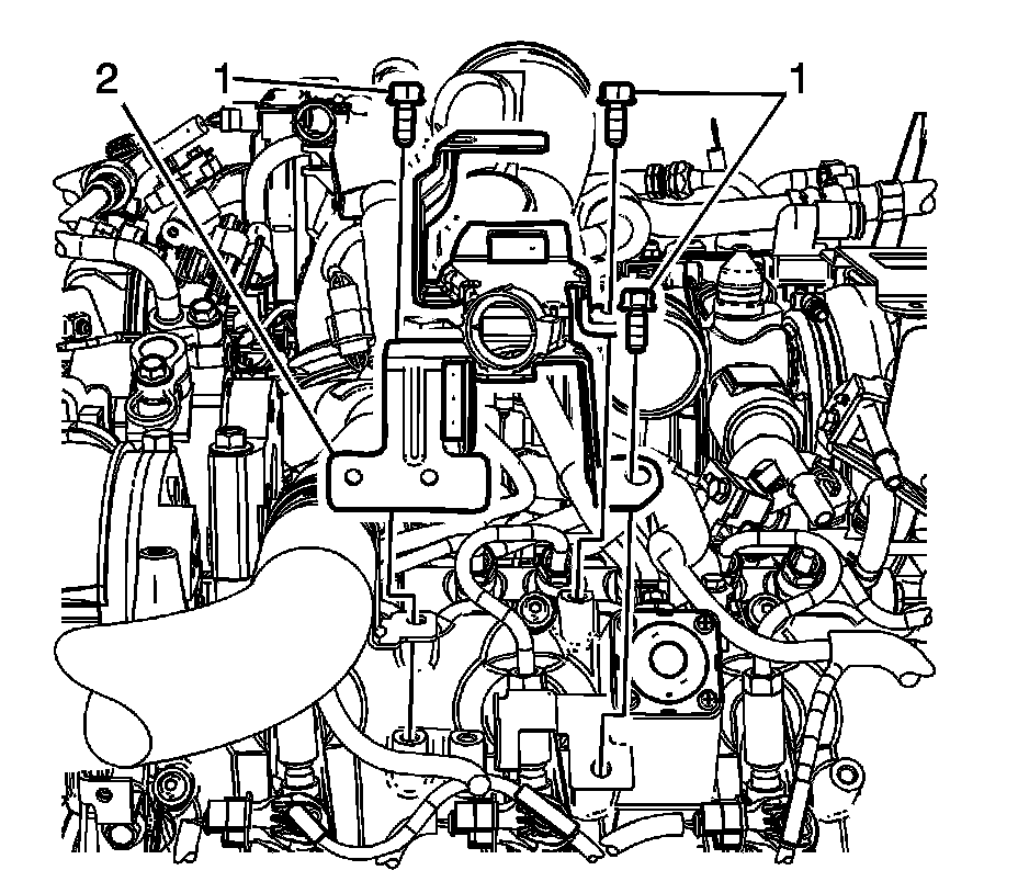 17. Remove the main electrical connector harness bracket bolts (1).