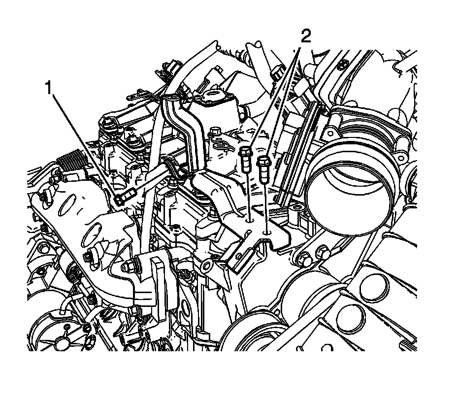 9. Remove the oil level indicator tube bracket bolts (2).