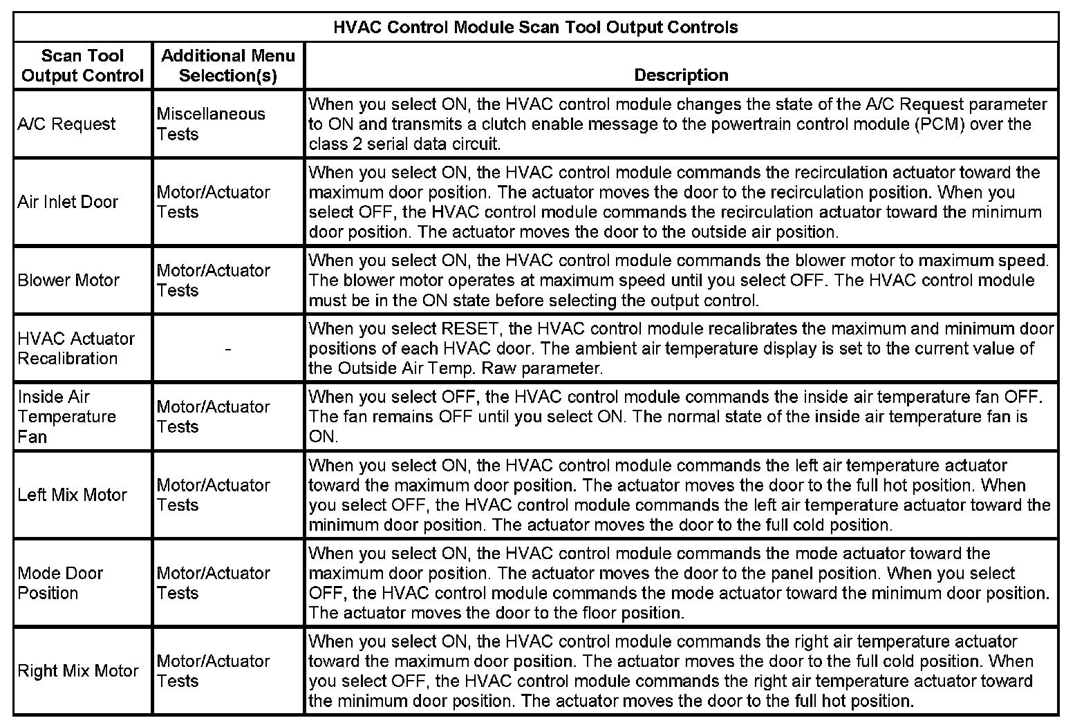 Scan Tool Output Controls