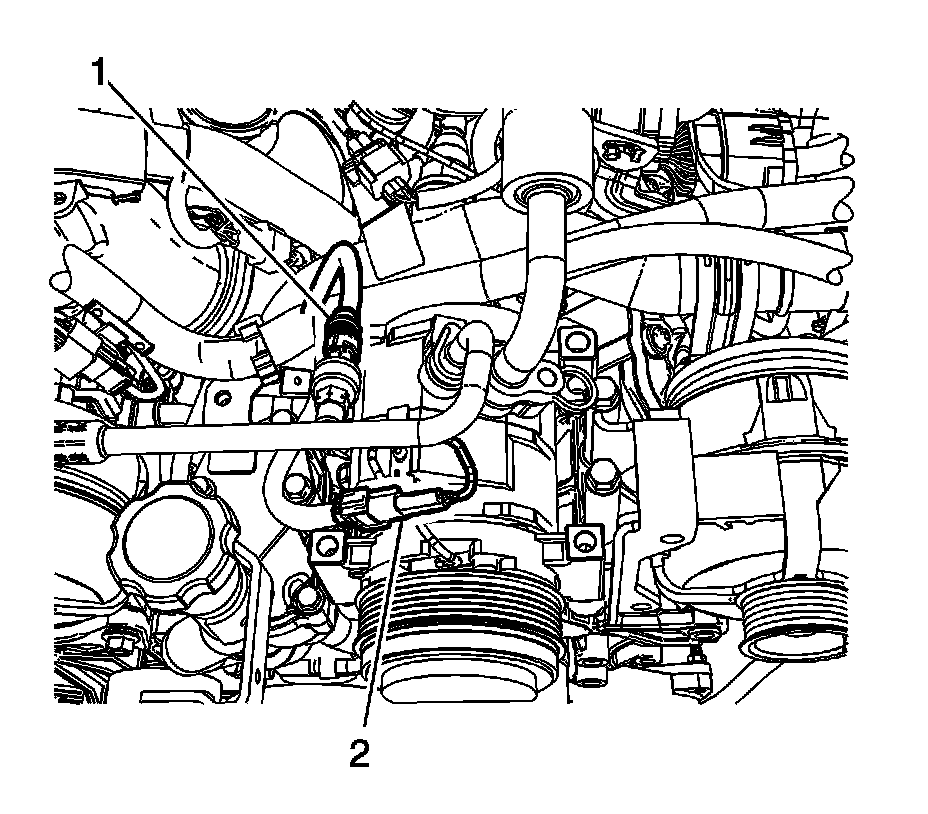 6. Disconnect the A/C compressor clutch electrical connector (2).
