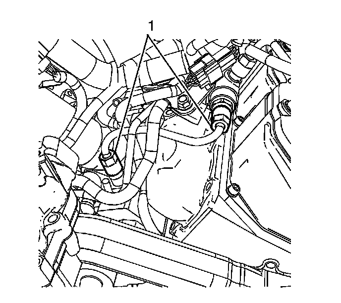 8. Loosen the left fuel rail fuel feed pipe fittings (1).