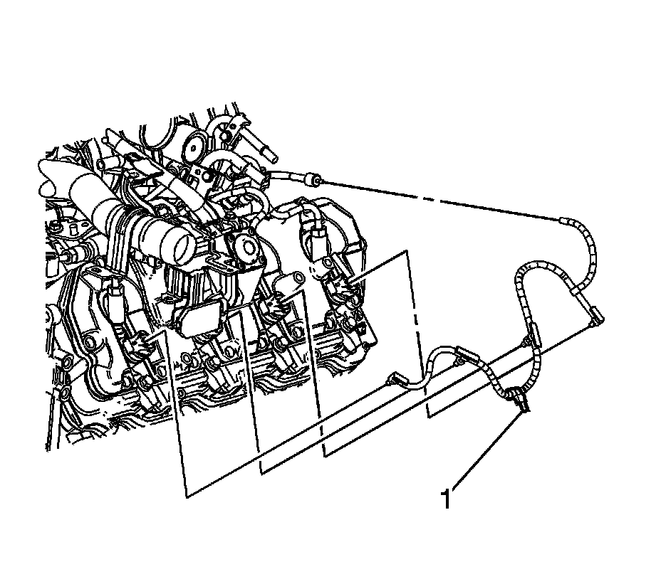 3. Install a NEW tie strap (1) securing the fuel injection fuel return pipe to the engine wiring harness in the location shown.