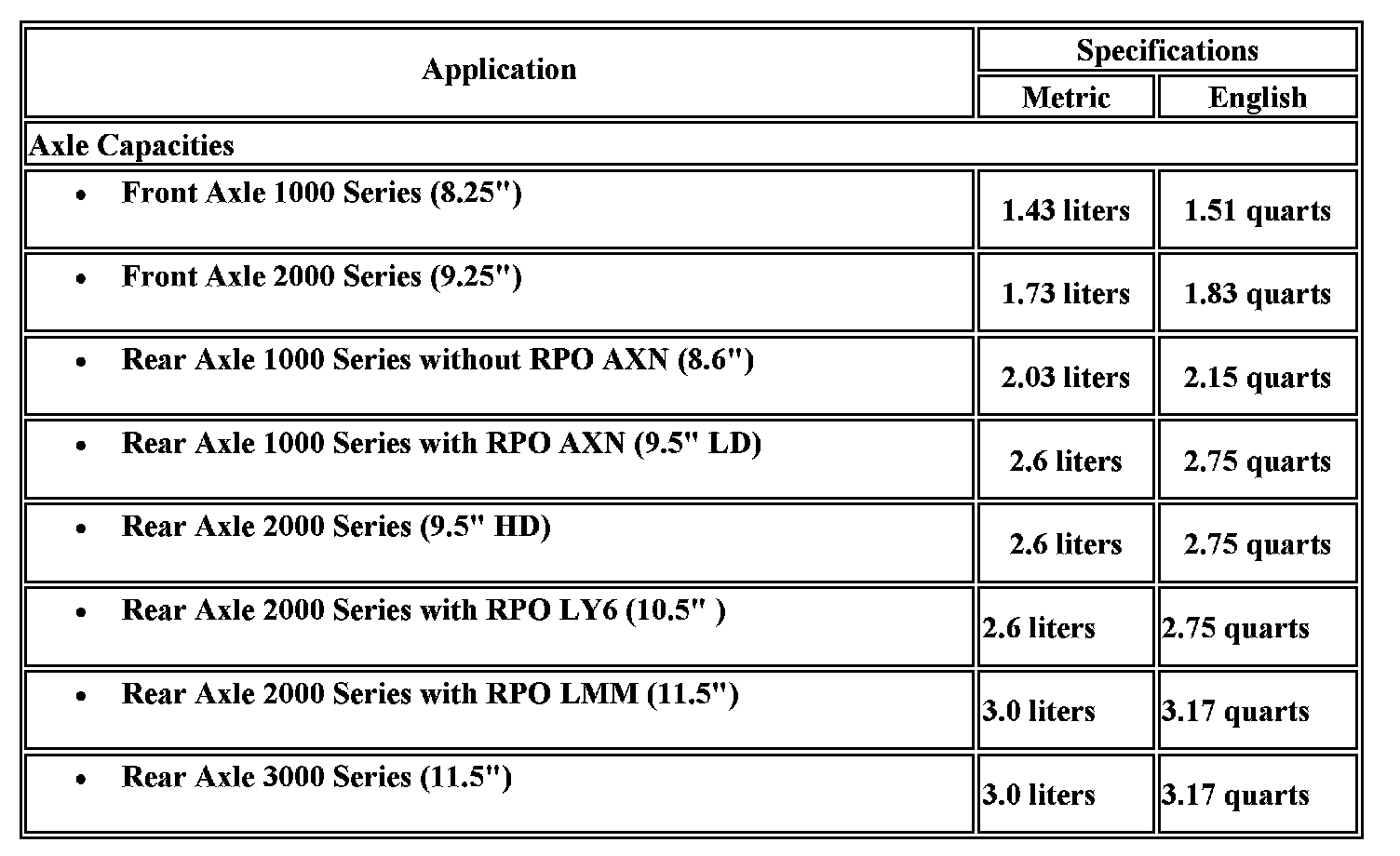 Capacity Specifications