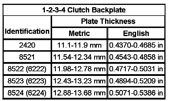 Selective Components Specifications1-2-3-4 Clutch Backplate: