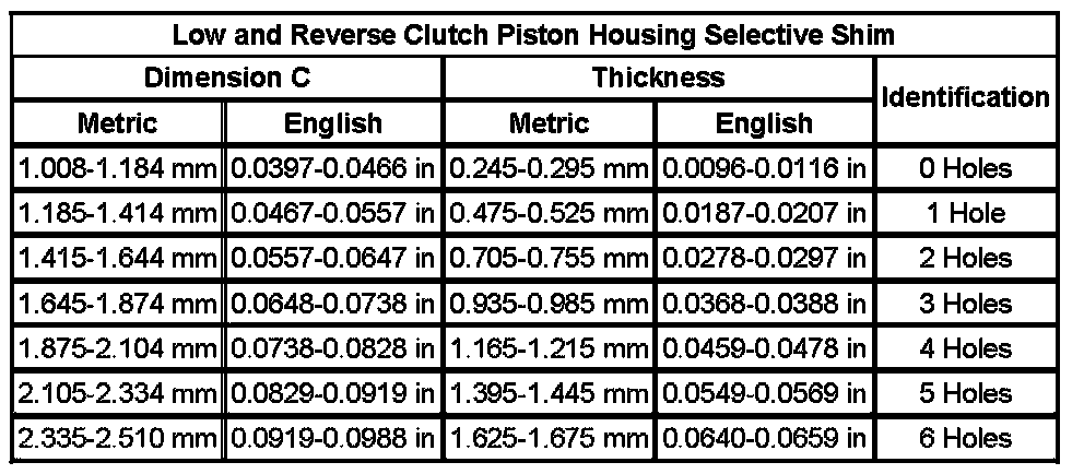 Low And Reverse Clutch Piston Housing Selective Shim: