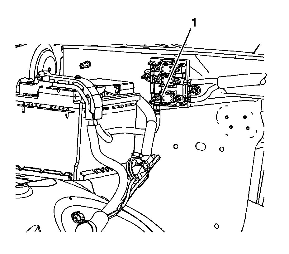 28. Remove the starter solenoid cable channel bolts (1).
