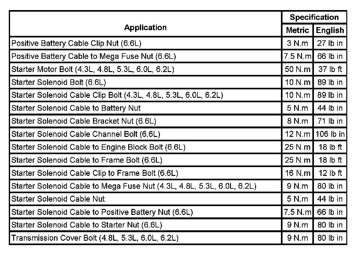 Starting and Charging: Specifications